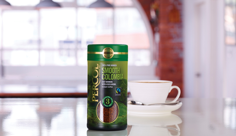 Percol’s Fairtrade Smooth Colombia is an easy drinking instant that captures the taste and flavour of Colombian coffee beans. Deliciously smooth, it has a tantalising rich aroma which is perfectly balanced by toffee and crisp citrus notes.