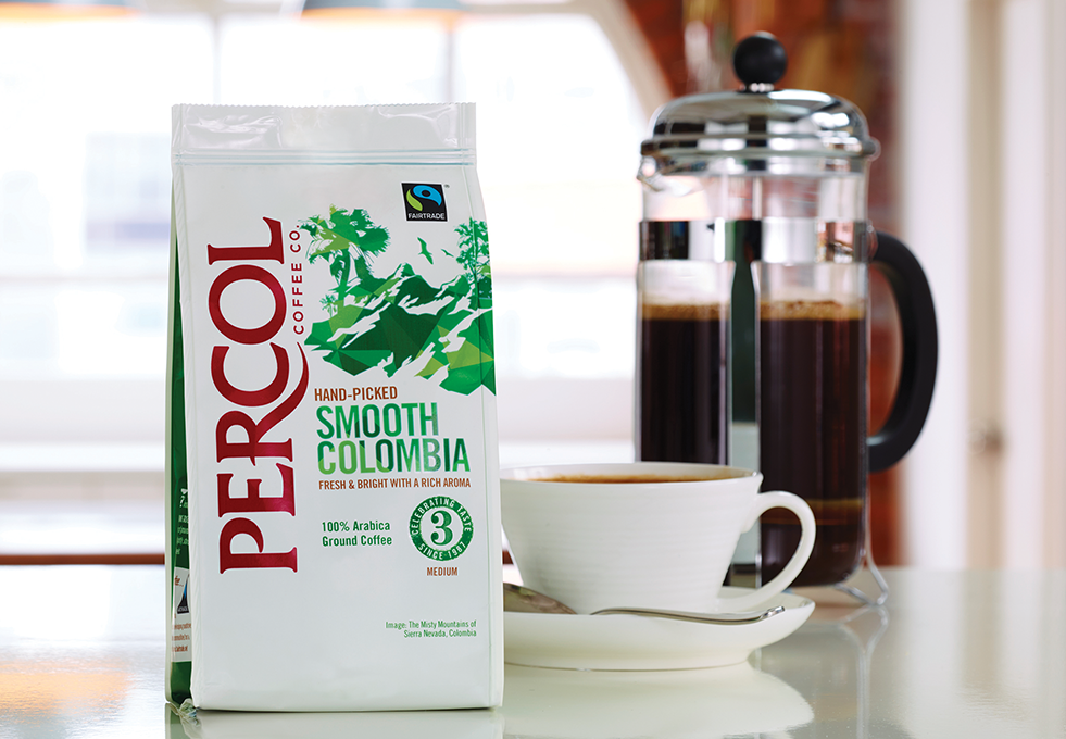 Percol’s Fairtrade Smooth Colombia contrasts a full and rich flavour with a satisfyingly smooth taste. It’s well balanced with a slightly nutty aftertaste, typical of Colombian coffee beans.