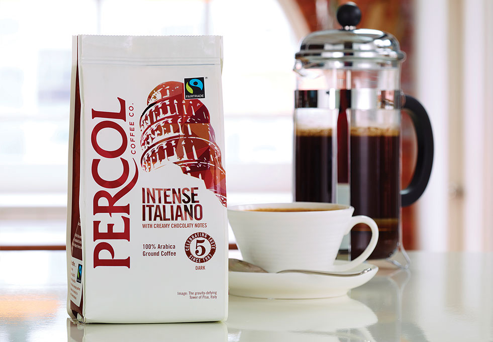 Sharing a cafetiere with friends is the perfect way to enjoy Percol’s award-winning ground coffee range. Percol brings you 100% Arabica coffees from all over the world, from a lighter medium roast to darker, rich roast.